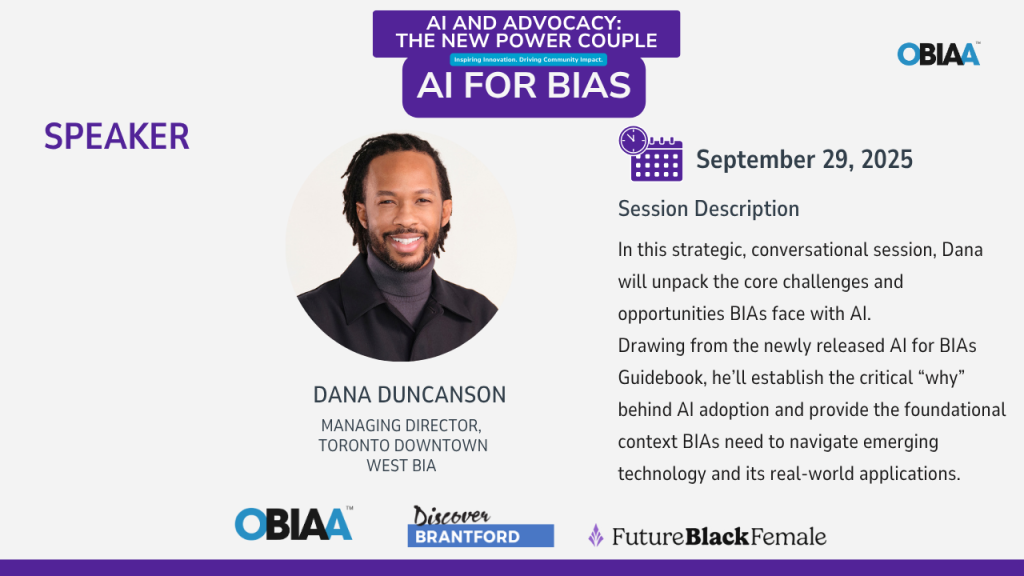 Dana Duncanson is the Managing Director of the Toronto Downtown West BIA, where he leads strategic initiatives that support local businesses, drive economic development, and enhance the vibrancy of one of Toronto’s most dynamic neighborhoods. With a background in marketing, communications, place branding, and strategic project management, Dana brings a human-centered lens to digital transformation and community development. He recently completed a research project exploring how Artificial Intelligence can be leveraged by BIAs to increase operational efficiency and community impact. Passionate about innovation, placemaking, and inclusive leadership, Dana is committed to building stronger, more connected urban communities.