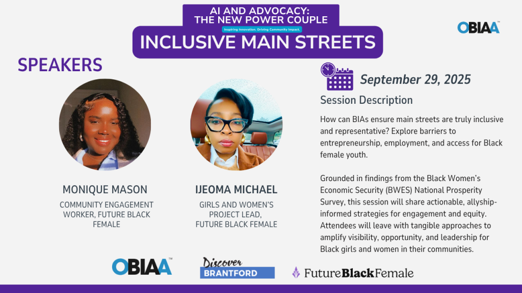 Monique will be hosting a session, along with Ijeoma Michael, exploring how BIAs can create welcoming spaces for Black female youth.
